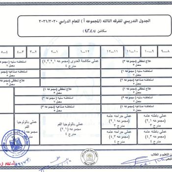 The teaching schedule for the third year, group (a) and (b) for the academic year 2020/2021.