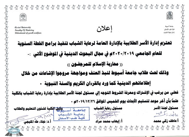The Student Families Department of Youth Welfare plans to implement the annual plan programs for the academic year 2019/2020 in the field of religious research.