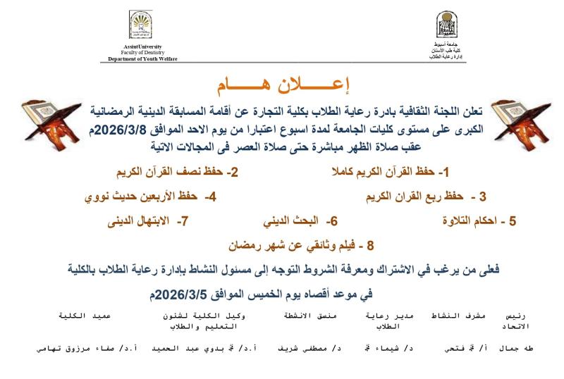 Announcement of the Grand Ramadan Religious Competition at the University Colleges Level. 4 March 2026