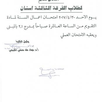 Announcement for fourth year students