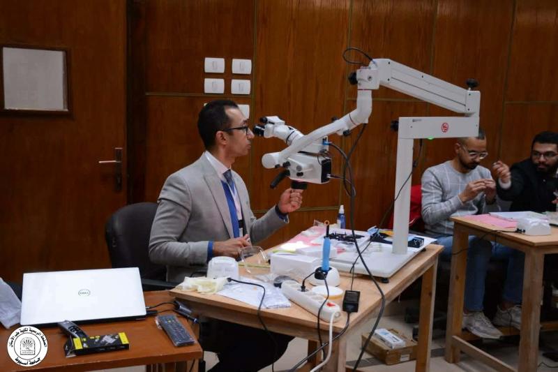 حاضر في ورشة العمل د. محمود القاضي - مدرس العلاج التحفظي و مدير وحدة التعليم الطبي المستمر - كلية طب الأسنان جامعة أسيوط و