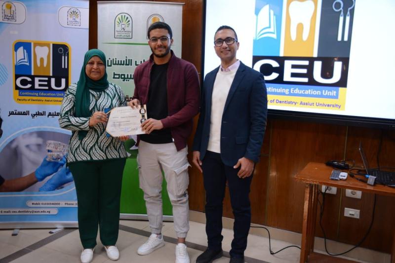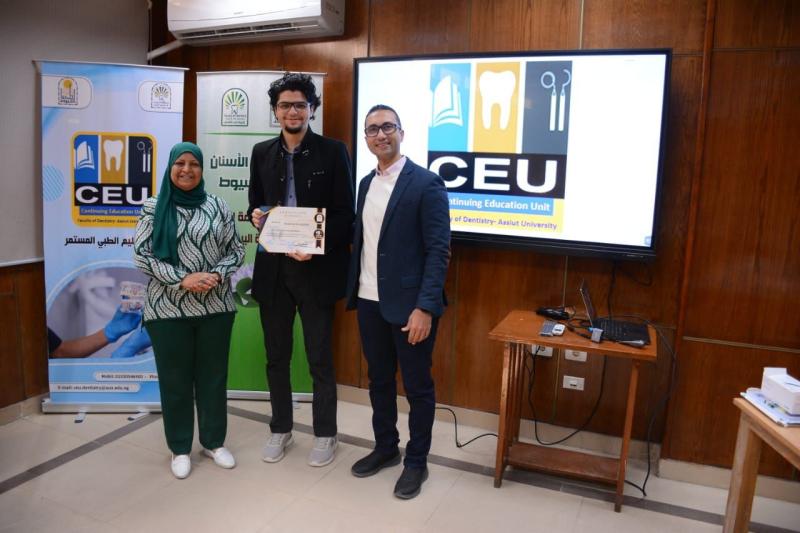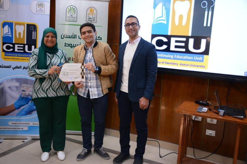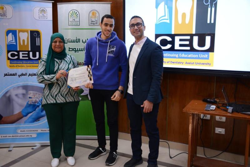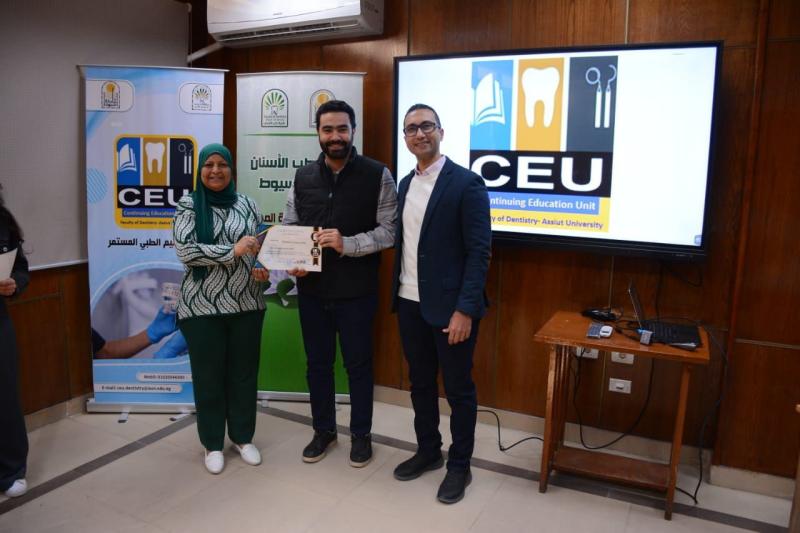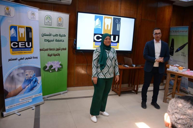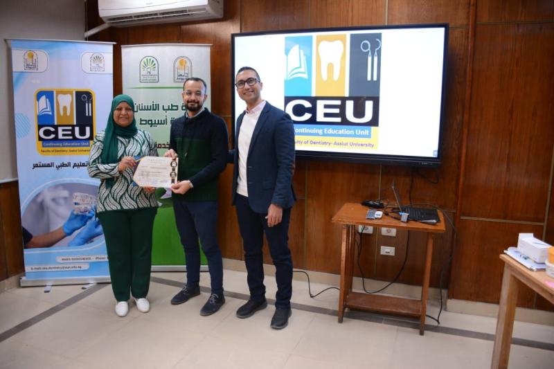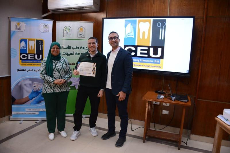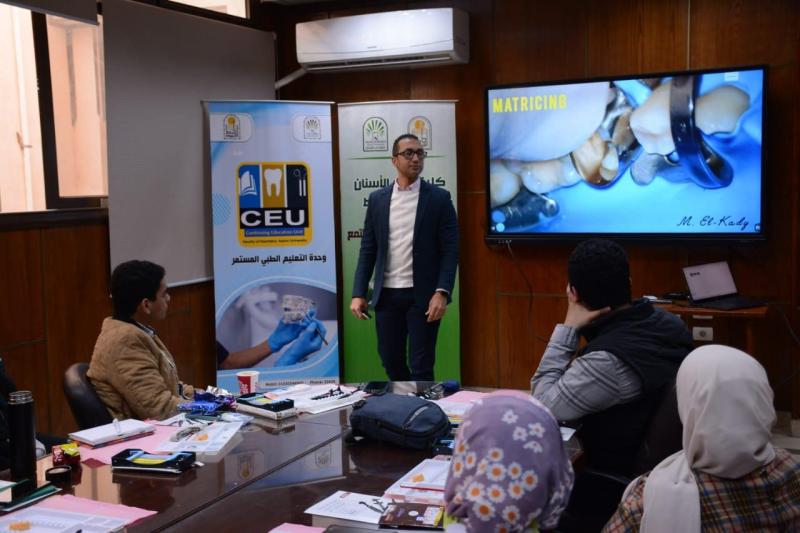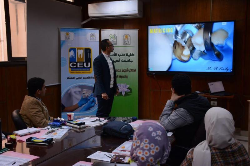 حاضر في ورشة العمل د. محمود القاضي - مدرس العلاج التحفظي و مدير وحدة التعليم الطبي المستمر - كلية طب الأسنان جامعة أسيوط و بمشاركة متميزة من أعضاء الهيئة المعاونه بقسم العلاج التحفظي بالكلية