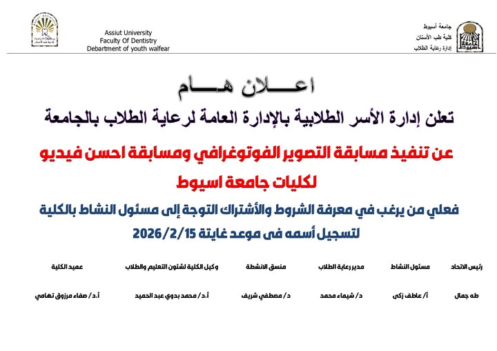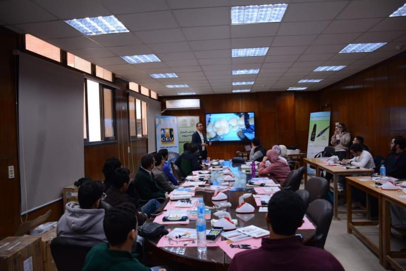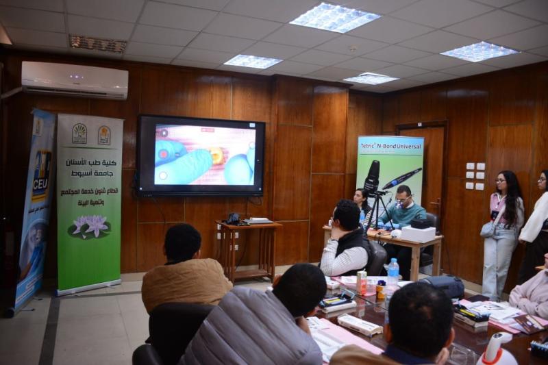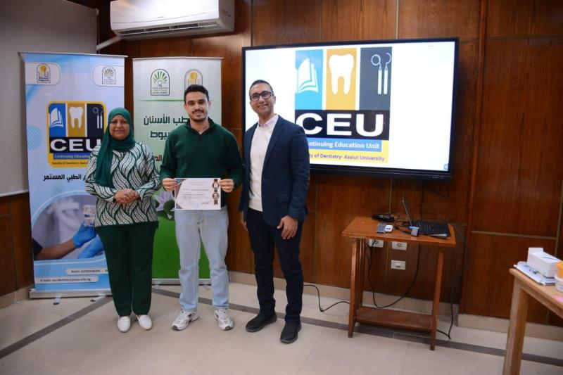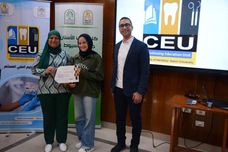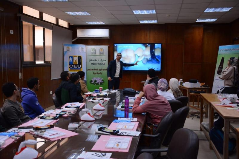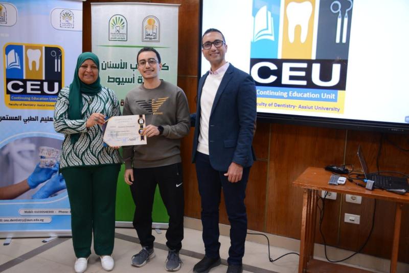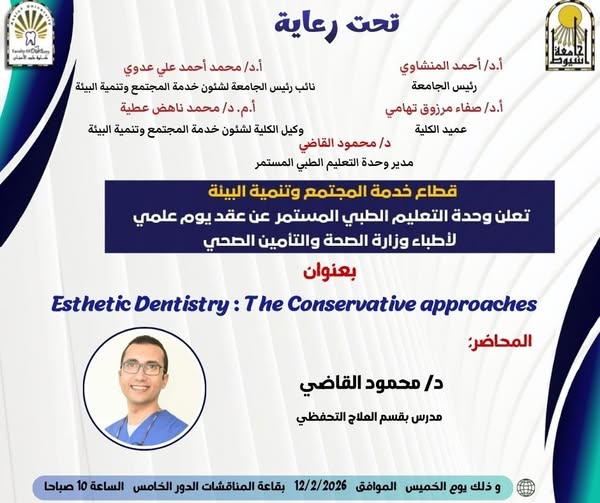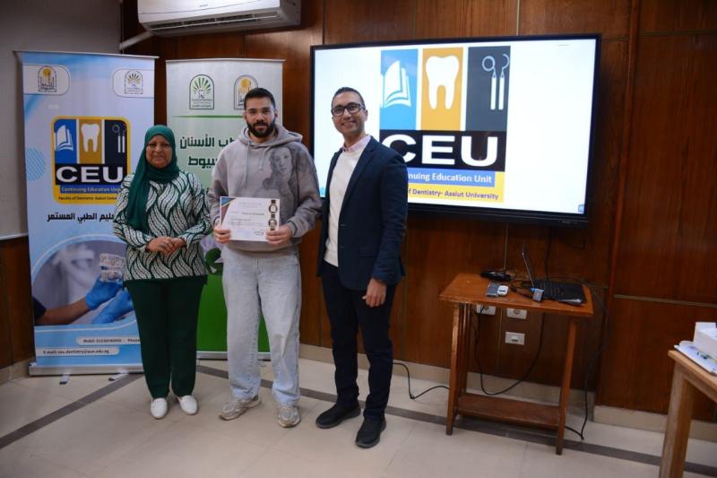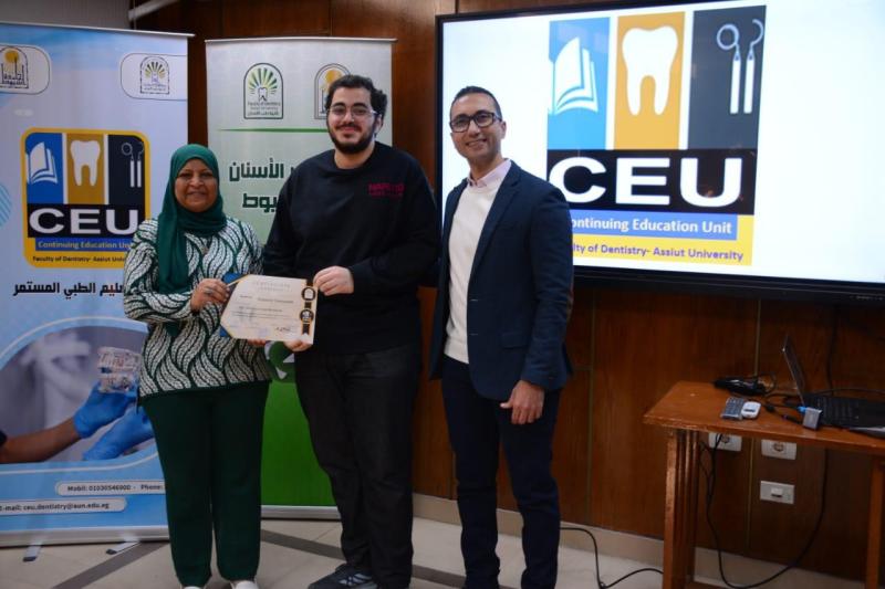 حاضر في ورشة العمل د. محمود القاضي - مدرس العلاج التحفظي و مدير وحدة التعليم الطبي المستمر - كلية طب الأسنان جامعة أسيوط و بمشاركة متميزة من أعضاء الهيئة المعاونه بقسم العلاج التحفظي بالكلية