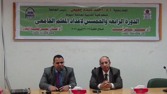 الدورة الرابعة والخمسين لإعداد المعلم الجامعي على أصول التدريس العامة والخاصة تطبيقاً لنص المادة (59) من اللائحة التنفيذية لقانون تنظيم الجامعات والتي يشارك فيها مجموعة من السادة المدرسين المساعدين و المعيدين على مستوى جامعة أسيوط والجامعات المصرية