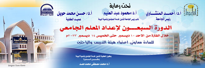 يتقدم الأستاذ الدكتور حسن محمد حويل عميد الكلية بأجمل التهاني للأستاذ الدكتور عمر محمد محمد مرسي لثقة معالي الأستاذ الدكتور أحمد المنشاوي رئيس الجامعة، وتعيين سيادته رئيسا لقسم أصول التربية بالكلية، متمنيا لسيادته دوام التوفيق والنجاح.