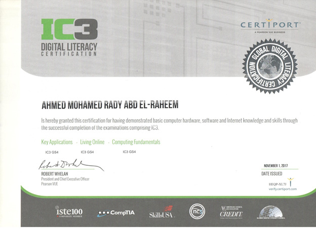 تم اعتماد مركز الخدمة العامة بكلية التربية – جامعة أسيوط للشهادة الدولية لامتحانات شهادة أساسيات الحاسب والإنترنت