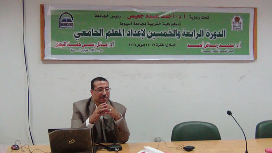 فعاليات اليوم الثانى للدورة الرابعة والخمسين لإعداد المعلم الجامعي 17 أبريل 2016 تحت رعاية الاستاذ الدكتور/ احمد عبده جعيص رئيس الجامعة والاستاذ الدكتور/ عادل رسمي حماد النجدى عميد الكلية ورئيس الدورة بدات اليوم الاحد الموافق 17 ابريل 2016م فى تمام الساعة التاسعة صباحاً بقاعة الاستاذ الدكتور / رجائى الطحلاوى بمقر كلية التربية اولى جلسات الدورة الرابعة والخمسين لإعداد المعلم الجامعي حيث حاضر فيها السيد الدكتور/ حمدى محمد محمد البيطار استاذ المناهج وطرق التدريس المساعد بكلية التربية ومدير وحدة ضمان الجودة ومدير وحدة الخدمات التكنولوجية وقد تحدث سيادته عن الاتجاهات الحديثة في طرق التدريس الجامعي وتحليل المحتوى وصياغة الأهداف