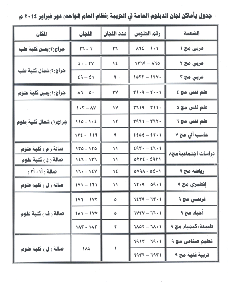 جدول اماكن لجان الدبلوم العامة فى التربية نظام العام الواحد دور فبراير 2014م 18 يناير 2014 جدول اماكن لجان الدبلوم العامة فى التربية نظام العام الواحد دور فبراير 2014م