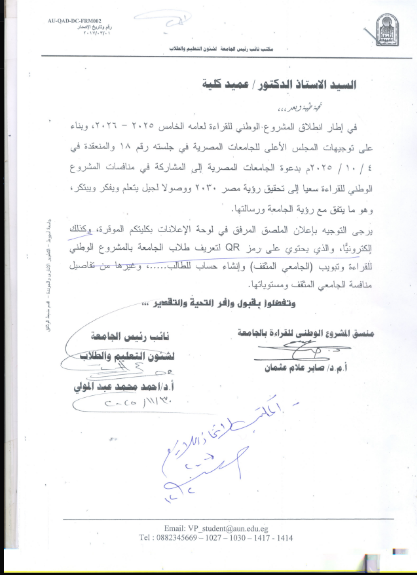 تم تعديل موعد تقييم التدريب الميداني للطلاب الذين تم توزيعهم على مدارس إدارة أسيوط ليصبح غدًا الاربعاء…
