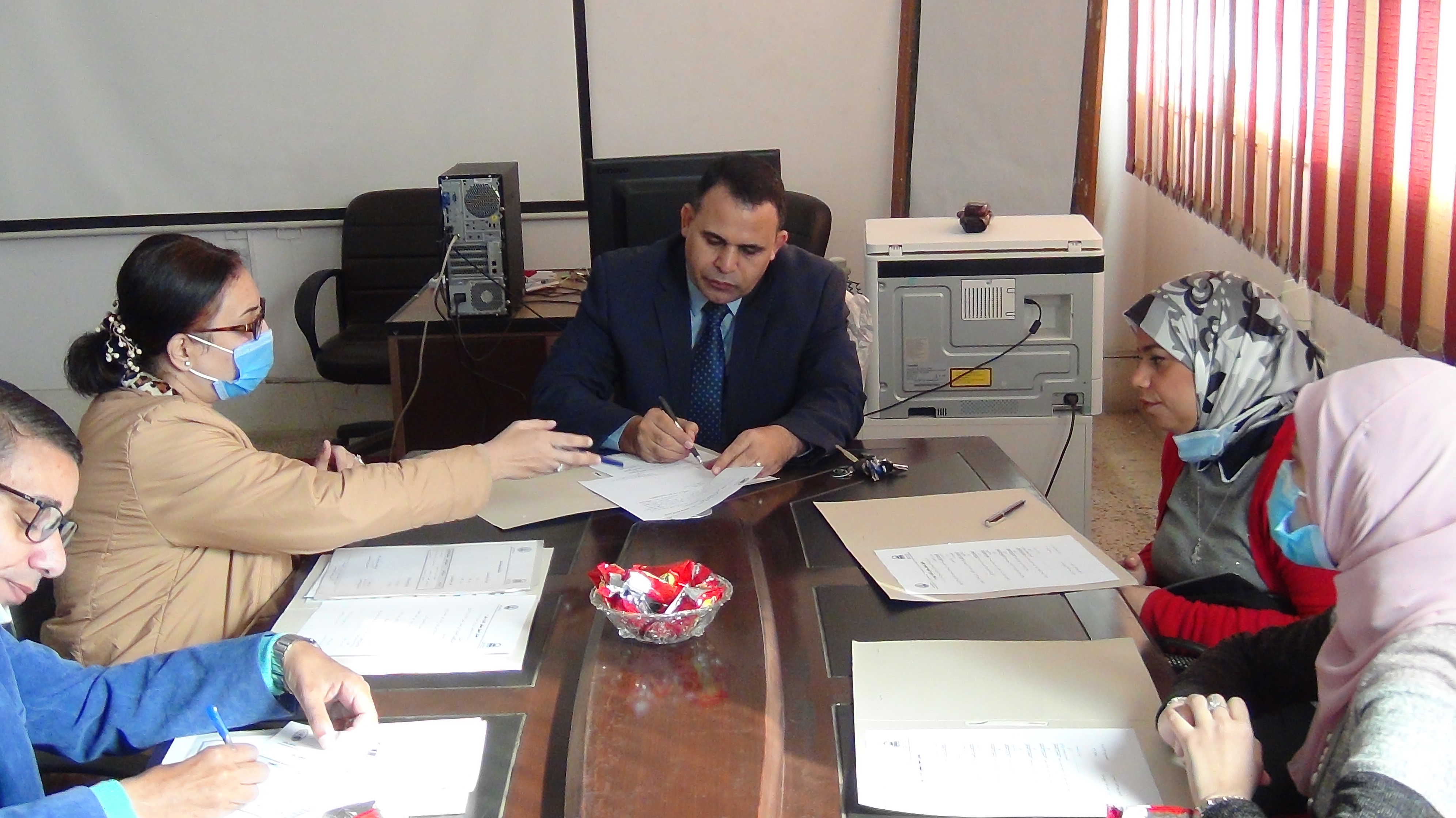 اجتمعت لجنة مجلس ادارة وحدة القياس والتقويم بمقر الوحدة في تمام الساعة الواحدة ظهراً يوم الاثنين الموافق 28/12/2020 برئاسة السيد الاستاذ الدكتور/ عادل رسمي حماد النجدي عميد الكلية ورئيس مجلس الادارة والسيدة الدكتورة/ ماريان ميلاد منصور مدير الوحدة وبحضور :