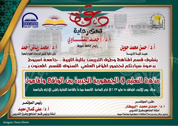 يتشرف قسم المناهج وطرق التدريس كلية التربية جامعة أسيوط بدعوة سيادتكم لحضور المؤتمر العلمي للقسم