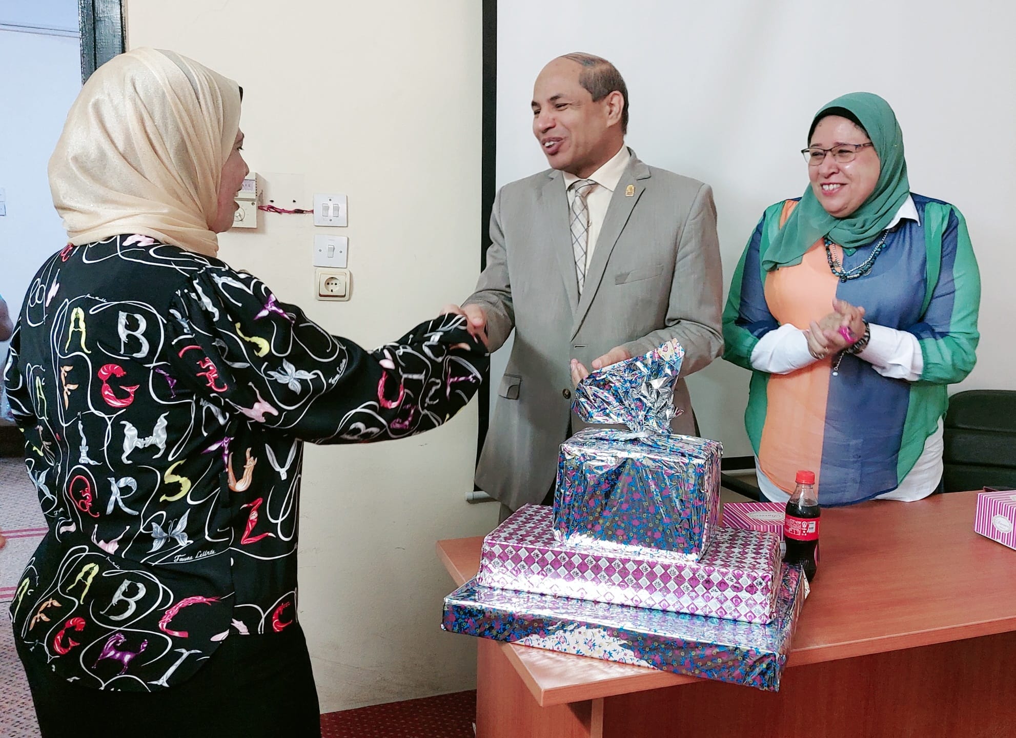 فى جو يسوده المحبة والالفة تم اليوم الخميس الموافق ٢٠٢٣/٥/١١ إقامة حفل تكربم السيد الفاضل/ مصطفى هاشم بخيت والسيدة الفاضلة / حنان جمال محمود صالح العاملان بإدارة الحسابات بالكلية وذلك لبلوغهما سن المعاش بحضور السيد الاستاذ الدكتور / حسن محمد حويل عميد الكلية والسيدة الاستاذة / سلوى هلالى أمين عام الكلية ولفيف من الزملاء بالكلية وفى نهاية الحفل قدم لهما السيد العميد رسالة شكر على ما قدماه من جهد وعطاء خلال عملهما بالكلية وتمنى لهما الجميع دوام الصحة والعافية والعطاء لحياتهما الجديدة القادمة .
