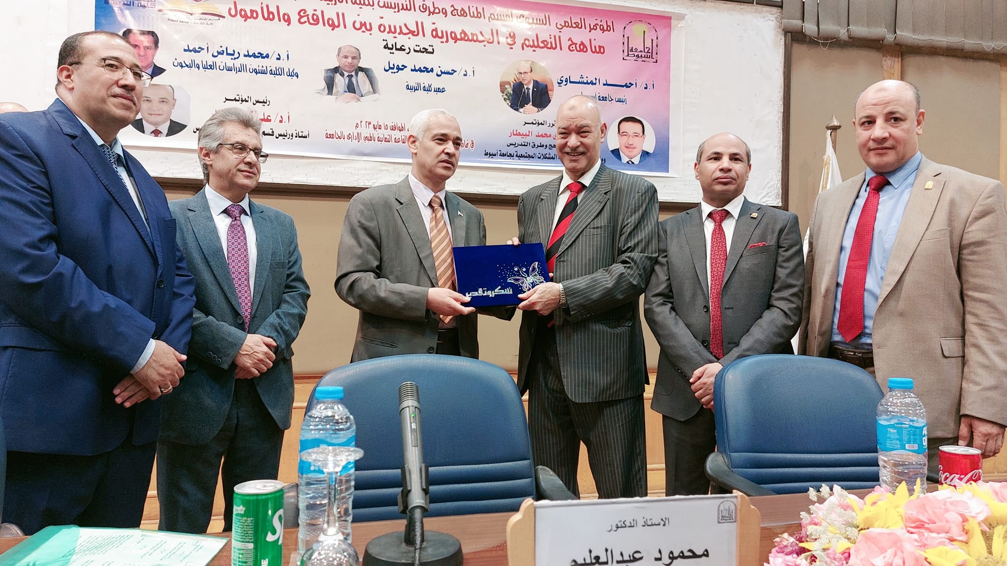 الجدير بالذكر أن الجلسة الافتتاحية للمؤتمر شهدت تكريم الدكتور أحمد المنشاوي رئيس الجامعة وتسلمها نيابةً عنه الدكتور أحمد عبد المولي نائبه لشئون التعليم والطلاب، فضلاً عن تكريم نواب رئيس الجامعة لقطاعي شئون التعليم والطلاب وشئون خدمة المجتمع وتنمية البيئة ، إلي جانب تكريم عميد كلية والسادة الوكلاء ورؤساء القسم الحالين والسابقين،وكذلك السادة أعضاء هيئة التدريس والهيئة المعاونة ممن تم ترقيتهم هذا العام .