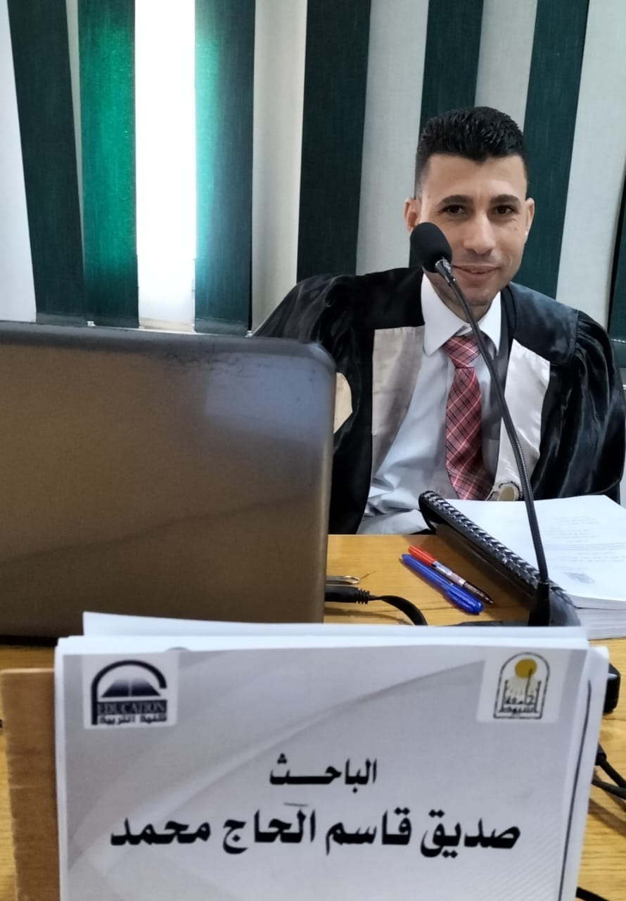 مناقشة رسالة الماجستير في التربية تخصص(مناهج وطرق تدريس تكنولوجيا التعليم)المقدمة من الباحث/حسام زكريا محمد حماد بعنوان :تصميم بيئة تعلم إلكترونية قائمة علي مراسي التعلم وأثرها في تنمية مهارات إنتاج برمجيات الواقع المعزز(AR) والكفاءة الذاتية لدى معلمي المرحلة الابتدائية. كل الشكر والتقدير للجنة الحكم والمناقشة. ا.د.محمود سيد محمود ابو ناجي استاذ المناهج وطرق تدريس تكنولوجيا التعليم المتفرغ بكلية التربية جامعة أسيوط. رئيسا ومشرفا.