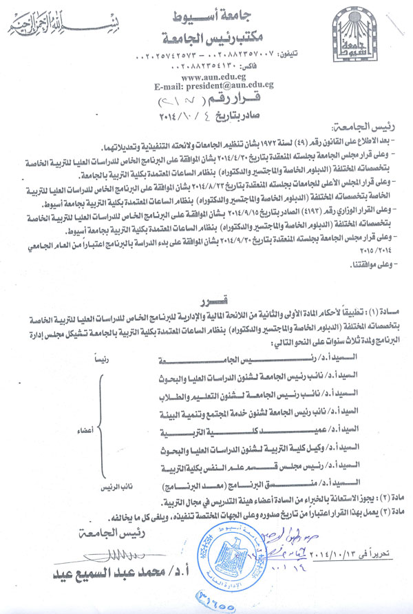 تشكيل مجلس إدارة البرنامج الخاص فى التربية الخاصة بكلية التربية 16 أكتوبر 2014 تشكيل مجلس إدارة البرنامج الخاص فى التربية الخاصة بكلية التربية