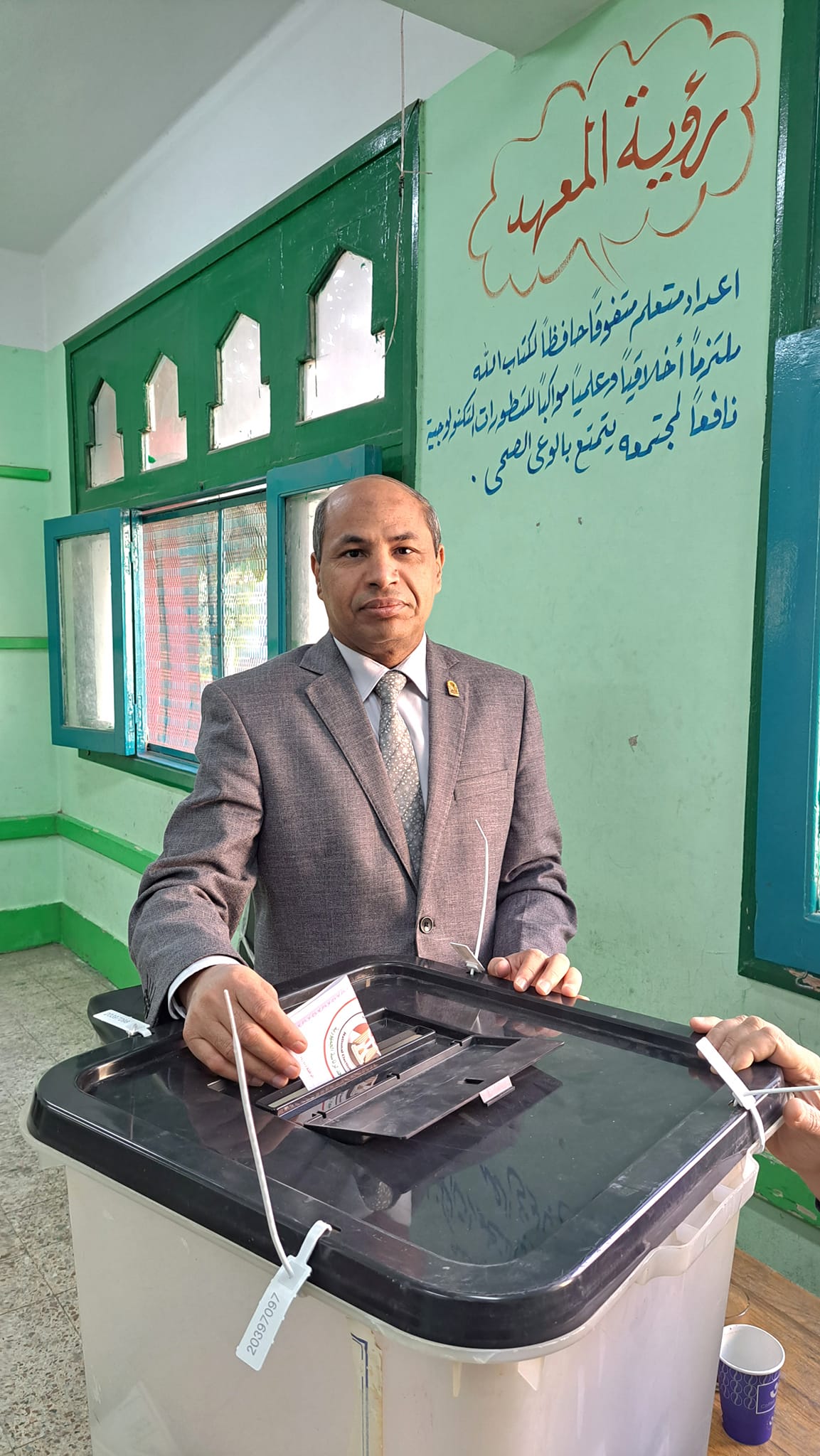 This morning, Professor Dr. Hassan Mohamed Haweel, Dean of the College, cast his vote in the presidential elections before the committee of the Al-Azhari Cultural Institute in Assiut.