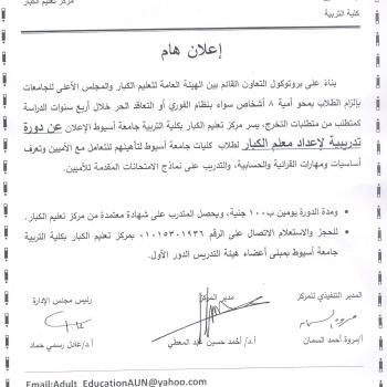 Prof. Ahmed Abdu Jaeis, President of Assiut University, announced the start of the study with four new study groups at the Faculty of Education in Assiut for the first time starting from the next…
