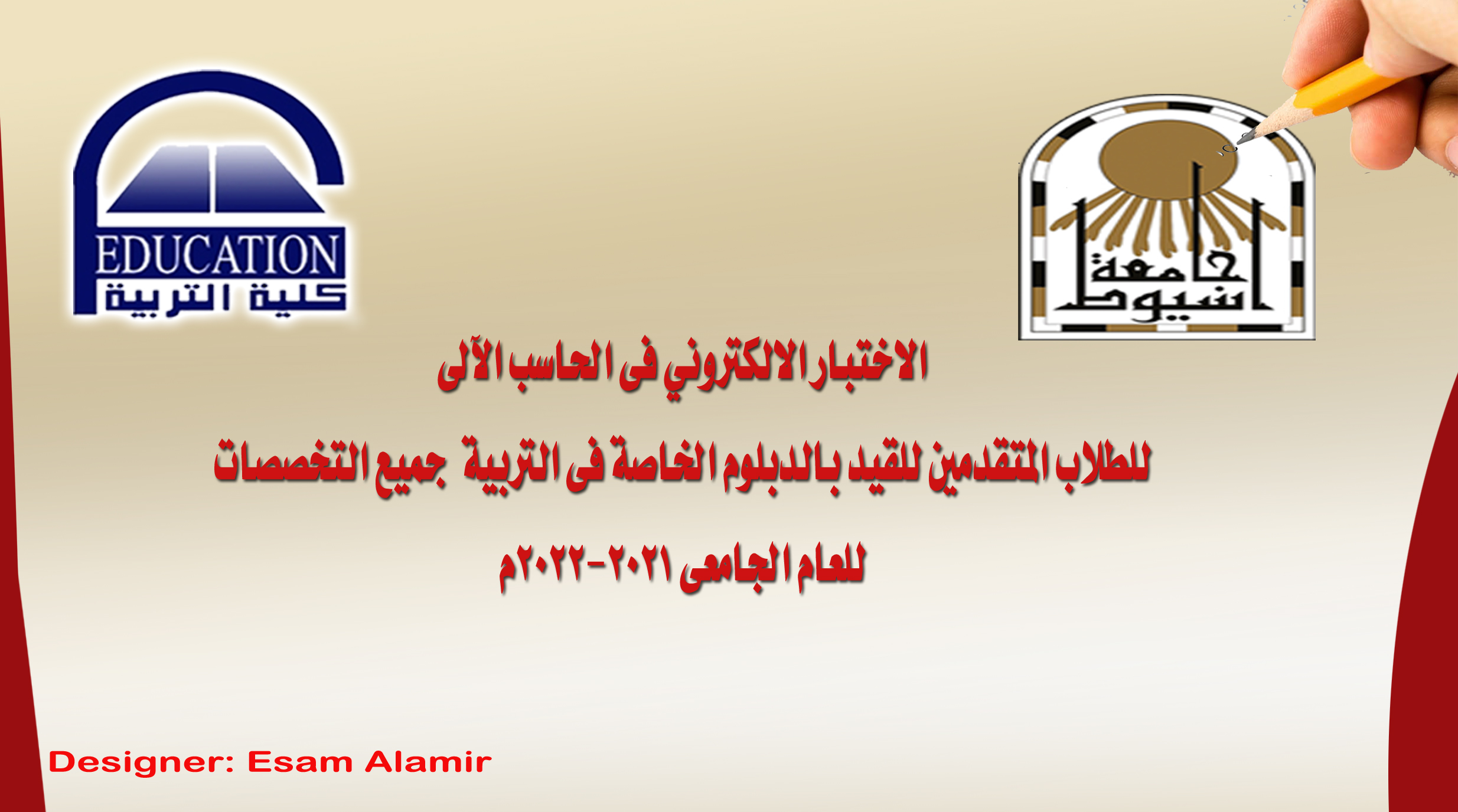 اختبارت القبول للطلاب المتقدمين للقيد بالدبلوم الخاصة اختبار الحاسب الآلي العام الجامعي 2021-2022م 23 سبتمبر 2021 يبدا اختبارت القبول للطلاب المتقدمين للقيد بالدبلوم الخاصة اختبار الحاسب الآلي العام الجامعي 2021-2022م يوم الثلاثاء الموافق 12 اكتوبر 2021م من الساعة العاشرة صباحاً حتى الثانية ظهراً على الرابط التالي اضغط هنا