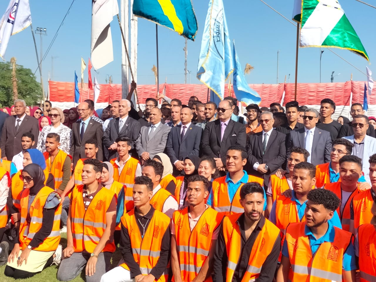 اليوم الأحد الموافق ٢٠٢٢/١٠/٢ كلية التربية تستقبل العام الدراسى الجديد بالمشاركة في تحية العلم والسلام الجمهورى لجمهورية مصر العربية تحت رعاية السيد الأستاذ الدكتور / أحمد المنشاوى القائم بعمل رئيس الجامعة والسيد الأستاذ الدكتور / احمد عبد المولى نائب رئيس الجامعة لشئون التعليم والطلاب وذلك بحضور السادة نواب رئيس الجامعة والسادة عمداء ووكلاء الكليات ولفيف من اعضاء هيئة التدريس والعاملين والطلاب.