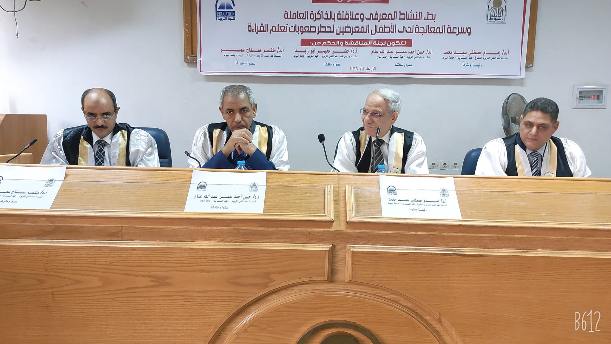 أ. د/خضر مخيمر ابو زيد أستاذ ورئيس قسم علم النفس التربوى بكلية التربية _ جامعة أسيوط عضوا ومشرفا