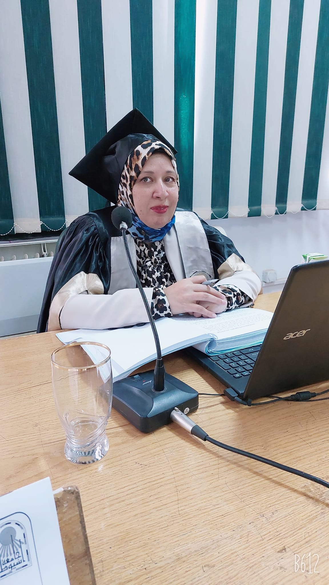 ( تقنية الحرية النفسية لعلاج اعراض اضطراب ما بعد الصدمة الناتج عن الاساءة الجنسية لبعض طالبات جامعة اسيوط دراسة تحليلية اكلينيكية) بحضور السيد الاستاذ الدكتور / حسن حويل عميد الكلية والاستاذ الدكتور / محمد جابر وكيل الكلية لشئون التعليم و الطلاب ولفيف من اعضاء هيئة التدريس والباحثين