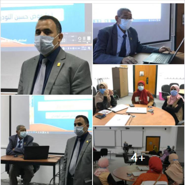 تحت رعاية السيد الاستاذ الدكتور/ عادل رسمي حماد النجدي عميد الكلية ورئيس مجلس الادارة ، تم عقد ورشة العمل الرابعة بعنوان " التطبيق الفعلي لملف الانجاز…