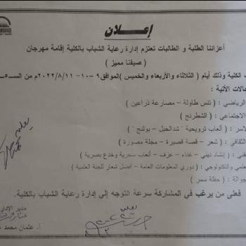 تحت رعاية الاستاذ الدكتور/حسن محمد حويل عميد الكلية. الاستاذ الدكتور/محمد جابر قاسم وكيل الكلية لشئون التعليم والطلاب بدأت امس الثلاثاء الموافق ٢٠٢٢/٨/٩ فعاليات مهرجان صيفنا مميز بإدارة رعاية…