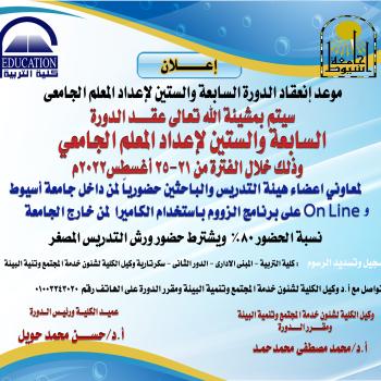 …يتقدم السيد الاستاذ الدكتور / حسن محمد حويل عميد الكلية باسمى آيات التهاني والتبريكات بمناسبة عيد الثوره المجيد " ثورة ٢٣ يوليو ١٩٥٢" و ذكرى مرور سبعون عام عليها