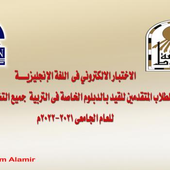 الاختبار الالكتروني فى اللغة الانجليزية للطلاب المتقدمين للقيد بالدبلوم الخاصة فى التربية جميع التخصصات للعام الجامعى 2021-2022م