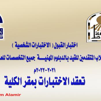 تبدا اختبارات القبول ( الاختبارت الشخصية ) للطلاب المتقدمين للقيد بالدبلوم المهنية العام الجامعى 2021-2022م