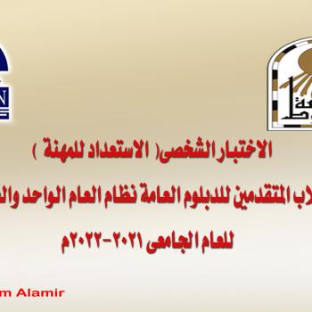 يبدا الاختبار الشخصي ( الاستعداد المهني ) للطلاب المتقدمين للقيد بالدبلوم العامة نظام العام الواحد ونظام العامين العام الجامعي 2021-2022م