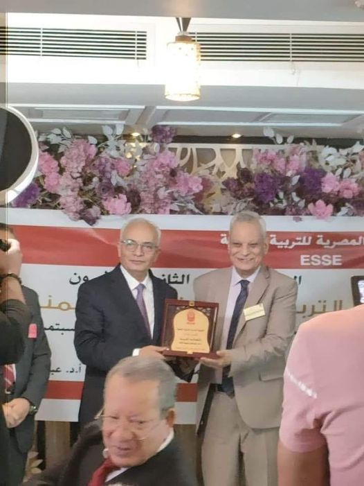 وقد قام الاستاذ الدكتور / وزير التربية والتعليم بتسليمه الدرع اثناء انعقاد المؤتمر .