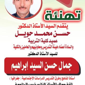 Prof. Dr. Hassan Mohamed Howail, Dean of the College, extends his warmest congratulations to Prof. Dr. Gamal Hassan El-Sayed for the confidence of His Excellency Prof. Dr. Ahmed El-Minshawy,…
