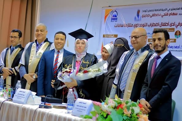 Today, Saturday, April 5, 2025, a discussion was held for the Master's thesis in Special Education (Autism) submitted by researcher Siham Fathi Mustafa Dardiri, entitled: "The PECS Program for Developing Cognitive Awareness in Children with Autism Spectrum Disorder and Savant Syndrome."