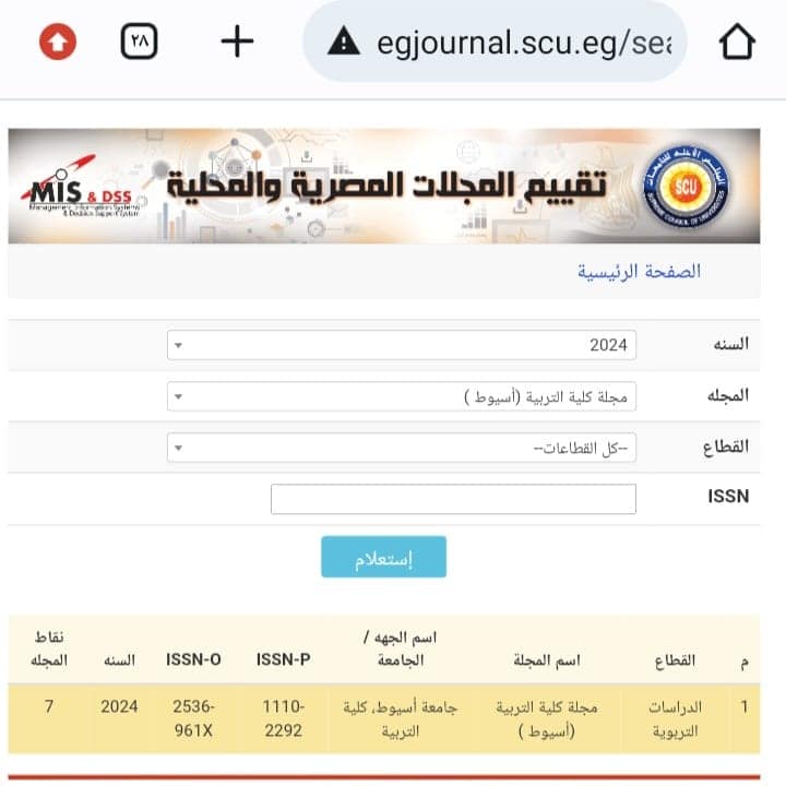 Three scientific journals issued by the Professor Dr. Ahmed El-Menshawy Center for Scientific Publishing, Excellence and Research at the College of Education continue to excel and obtain 7 points according to the evaluation of the Supreme Council of Unive