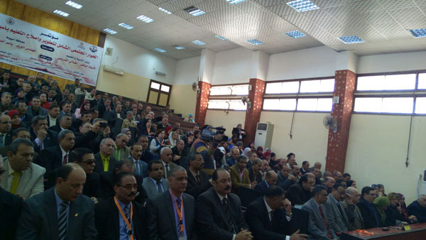 in the light of the contributions of the College of Education at Assiut University in the societal part, the College participated in the events of the comprehensive societal discourse related to the development and reform of education, organized by the Directorate of Education,Assiut governorate. The discourse is under the sponsorship of prof. Dr. Al-Helaly Al-Sherbiny, the minister of education, the engineer Yasser Al-Desouky who is Assiut governor, in The Secondary Hotel School at Assiut, with the presence of the house of the representatives members, prof. Dr. Adel Rasmy Hammad, the dean of the College of Education at Assiut. The conference covered the following FIVE dimensions: (curriculum development; evaluation, testing, and educational activities; professional education for the teacher and school leadership, the insertion of educational technology and e-learning in education; the special education and gifted welfare; technical education; and educational buildings). Worthy of mentioning is that the conference is based on a call from mr. president Abdel Fattah el-Sisi in the Youth Conference in Sharm el-Sheik and as a follow up of the education development conference in the Scientific City in October City.The conference targets providing a national worksheet aims to reform education out of the box while being in line with current challenges and economic conditions.