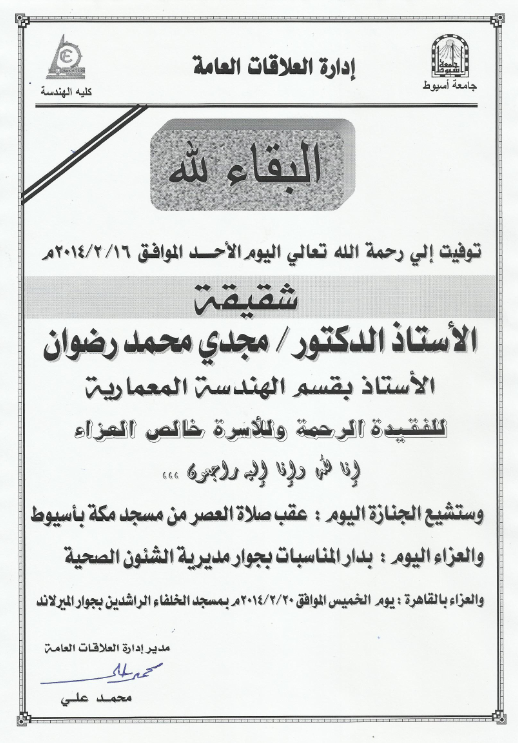 وستشيع الجنازة اليوم : عقب صلاة العصر من مسجد مكة بأسيوط