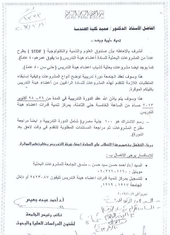 هذا وسوف تعقد الجامعة دورة تدريبية توضح انواع المشروعات وكيفية استيفاء المتطلبات اللازمة للتقدم لهذه المشروعات للسادة اعضاء هيئة