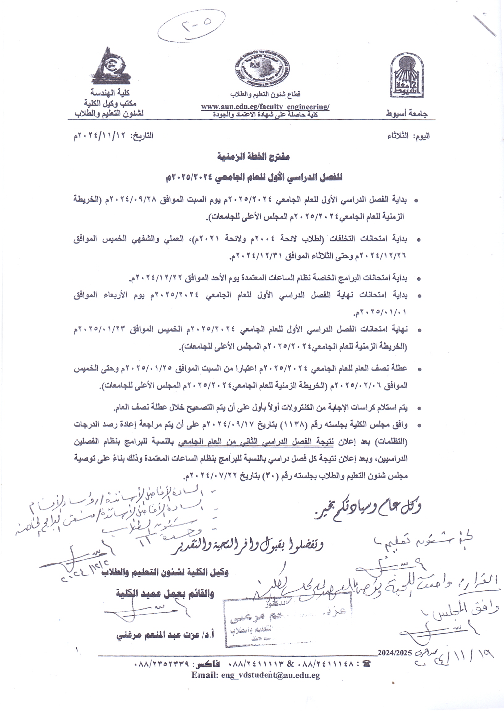 مقترح الخطة الزمنية للفصل الدراسى الاول للعام الجامعى 2024/2025م