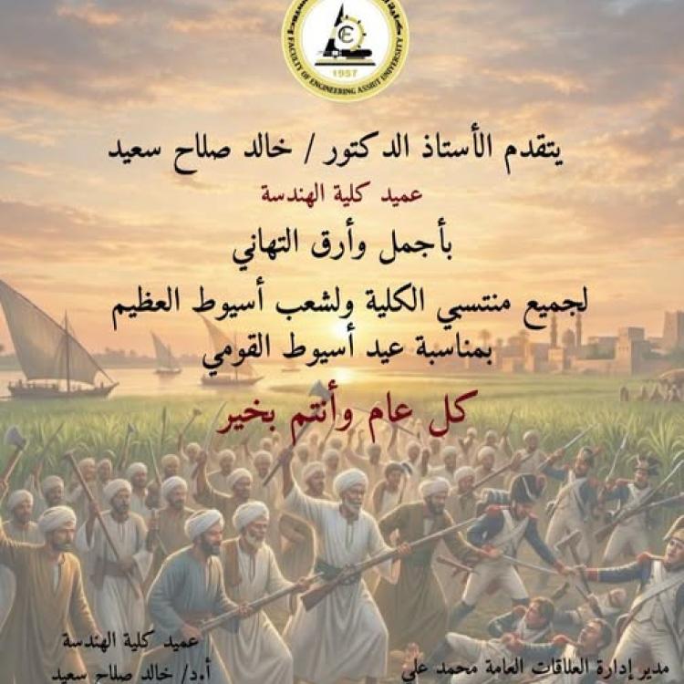 عميد الكلية يتقدم بخالص التهاني لشعب اسيوط بمناسبة العيد القومي