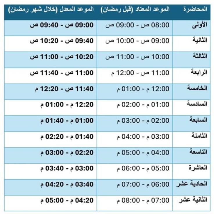مواعيد الجداول الدراسية بشهر رمضان المعظم