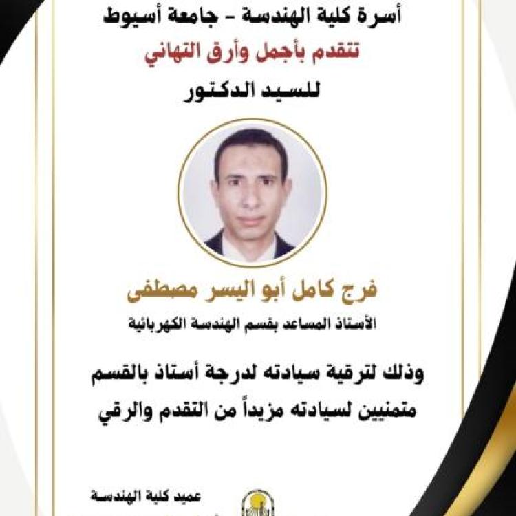 تهنئة للسيد الدكتور / فرج كامل أبو اليسر مصطفى