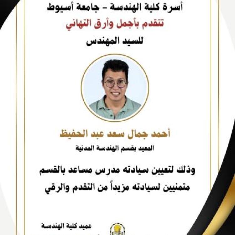 تهنئة للسيد المهندس / أحمد جمال سعد عبد الحفيظ