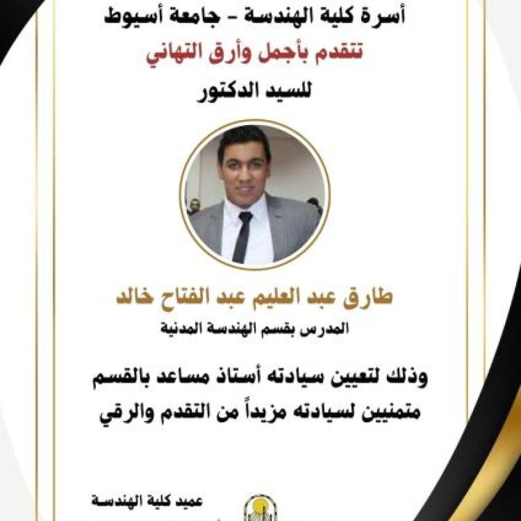 تهنئة للسيد الدكتور /طارق عبد العليم عبد الفتاح