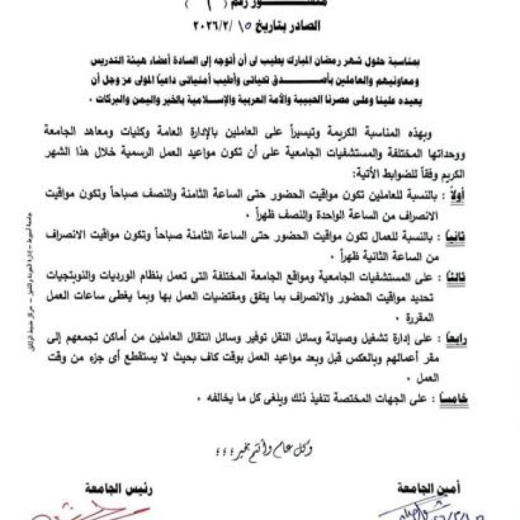 مواعيد حضور وانصراف شهر رمضان المبارك