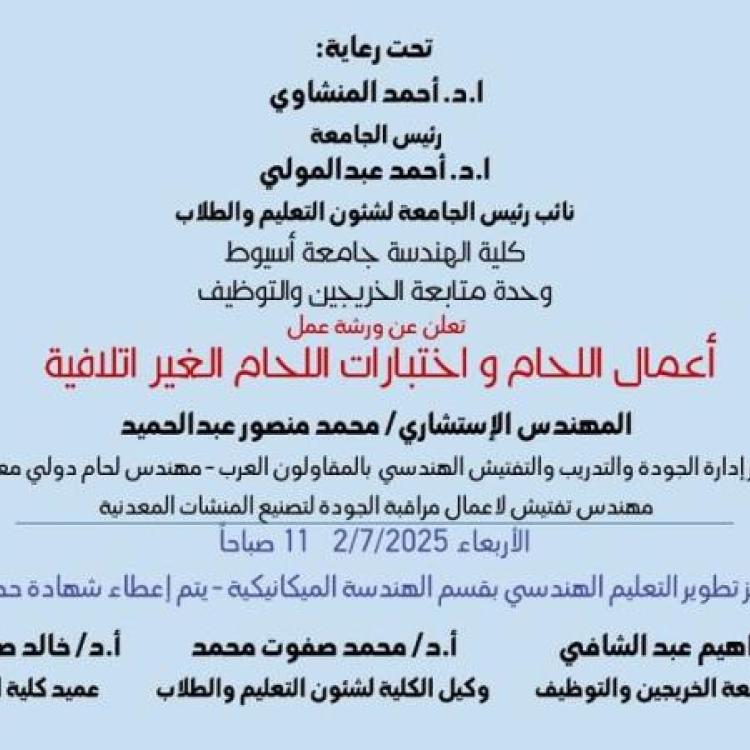 يتشرف قسم الهندسة المدنية بدعوة سيادتكم لحضور مناقشة رسالة الماجستير المقدمة من المهندس أحمد يسري عبد العليم، يوم الخميس الموافق ٢٦-٦-٢٠٢٥ بقاعة المناقشات بقسم الهندسة المدنية(قاعة ا.د. عبد الرحمن…