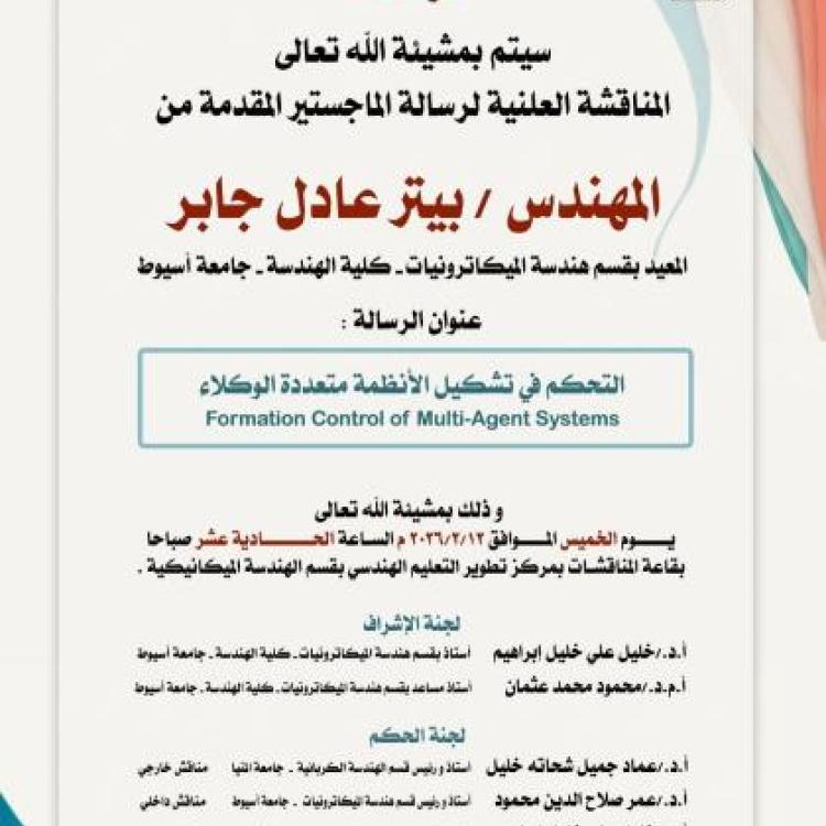 دعوة مناقشة رسالة ماجستير فى هندسة الميكاترونيات