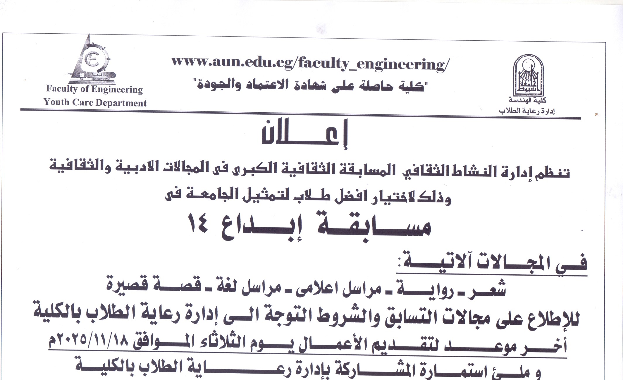 اختيار كلية الهندسة بجامعة أسيوط