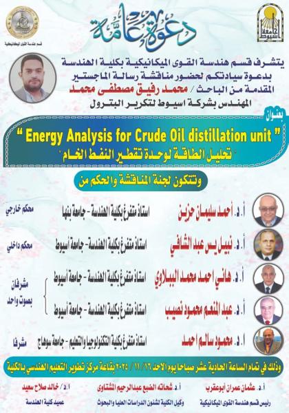 دعوة لحضور مناقشة رسالة الماجستير من الباحث/ محمد رفيق مصطفى