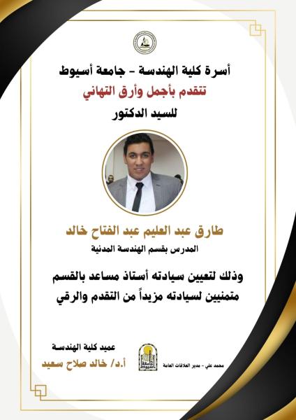 تهنئة للسيد الدكتور /طارق عبد العليم عبد الفتاح